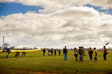 All of the airplane interiors were shot with the plane stationary in the hanger. We whited out the windows and used a large piece of cardboard to blow wind onto the actors.